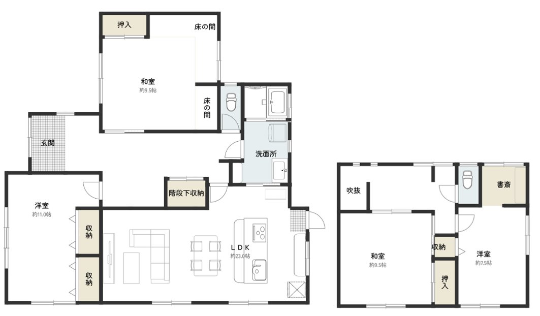 全室収納付きなので、毎年増えていくお子さまの衣類やおもちゃも、家中すっきり整理できます。