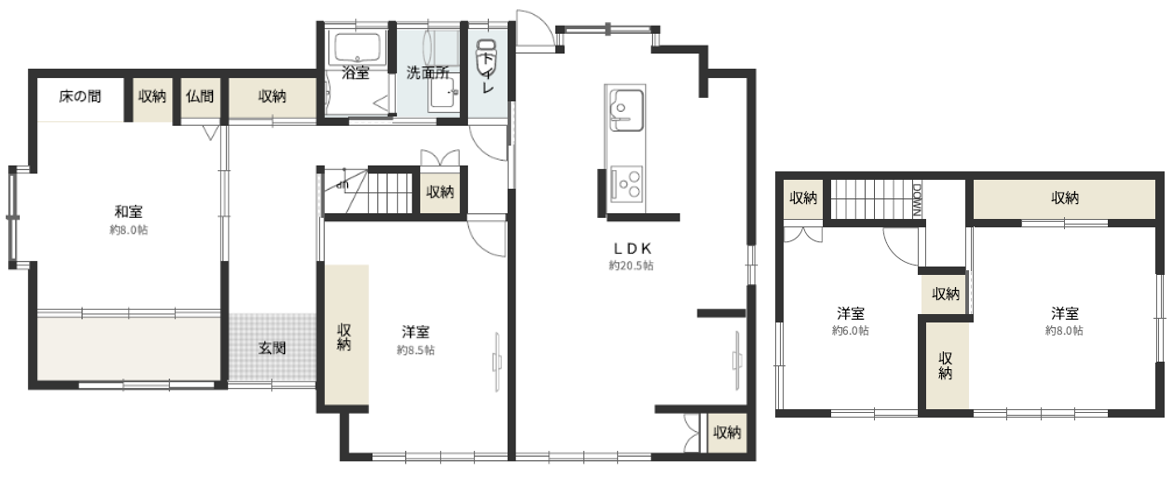 ・1階に洋室・和室があるので年齢やライフスタイルに合わせた使い分けが可能♪将来的にバリアフリーへの対応もしやすいです♪