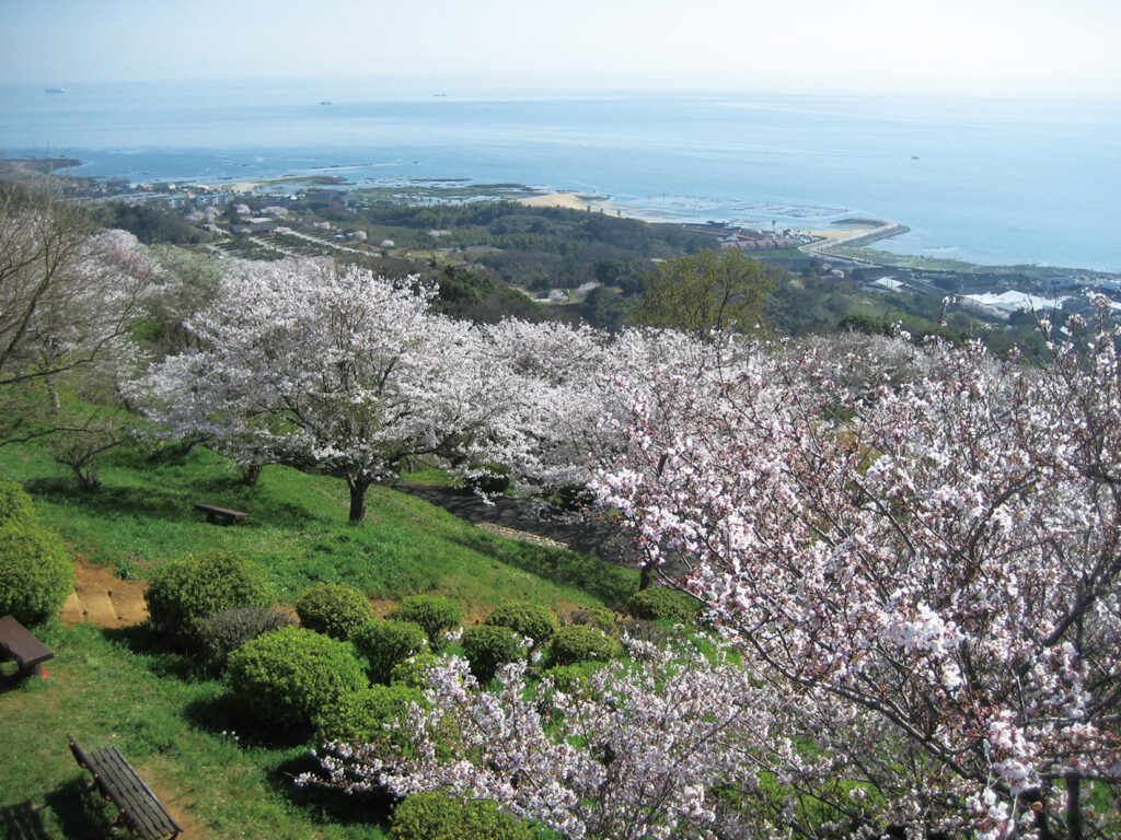 春は、1万本もの桜が山を染める見事な景観が人気です。夕景や夜景も美しく、「新日本の夜景100選」に選ばれています。