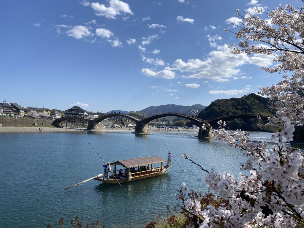 春の遊覧船「さくら舟」に乗って、錦川から桜と橋の美しい情景をゆったりと眺めることもできます。