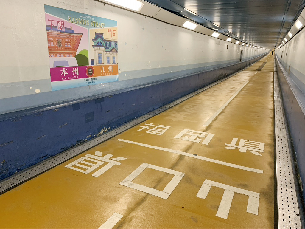 唐戸市場から車で5分ほどの場所にある関門トンネル人道。下関市と福岡県北九州市を結ぶ関門トンネルの、歩行者用トンネルです。