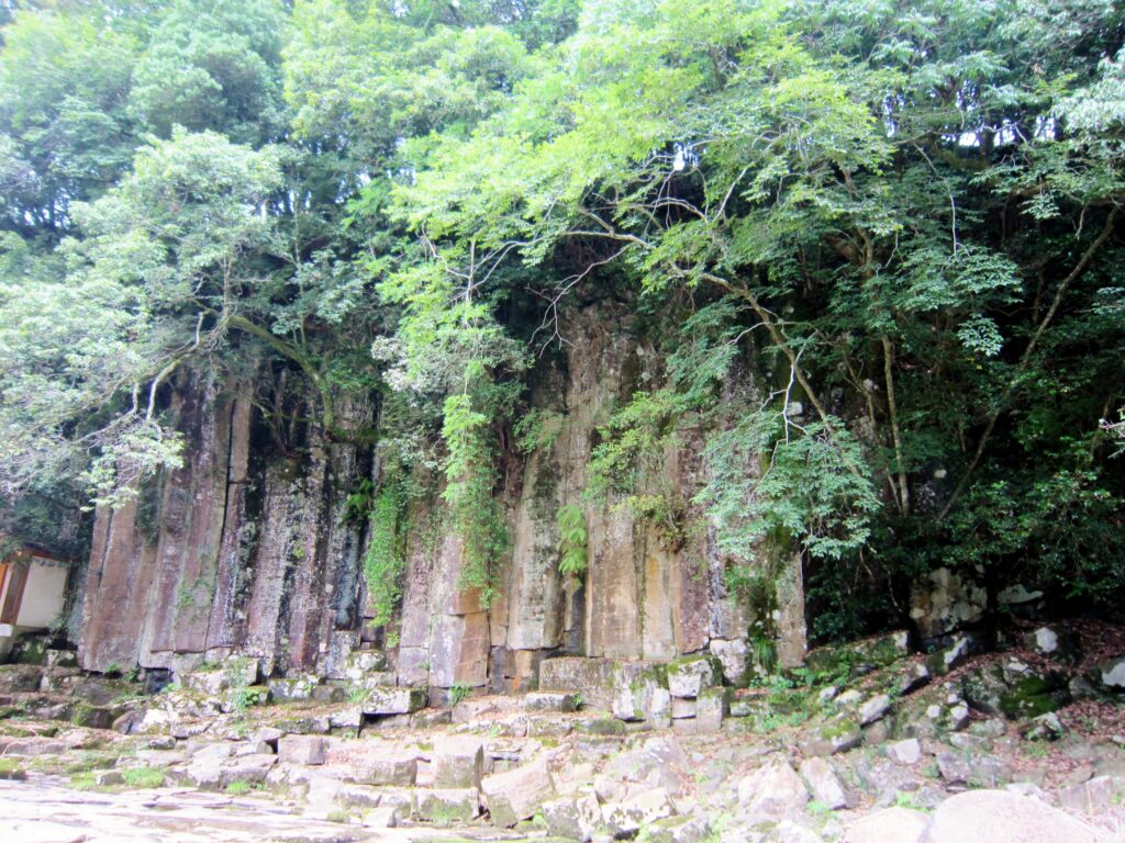 約40万年前、伊良尾(いらお)山が噴火し、溶岩が流れ下った約14㎞には、龍のうろこのようなヒビ割れ(柱状節理)ができ、龍が通った道と呼ばれています。このルートには様々な火山地形があり、そのひとつが道永の滝です。