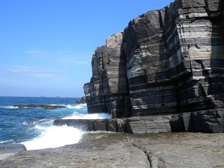 白黒のストライプの断崖が美しい、須佐ホルンフェルス
