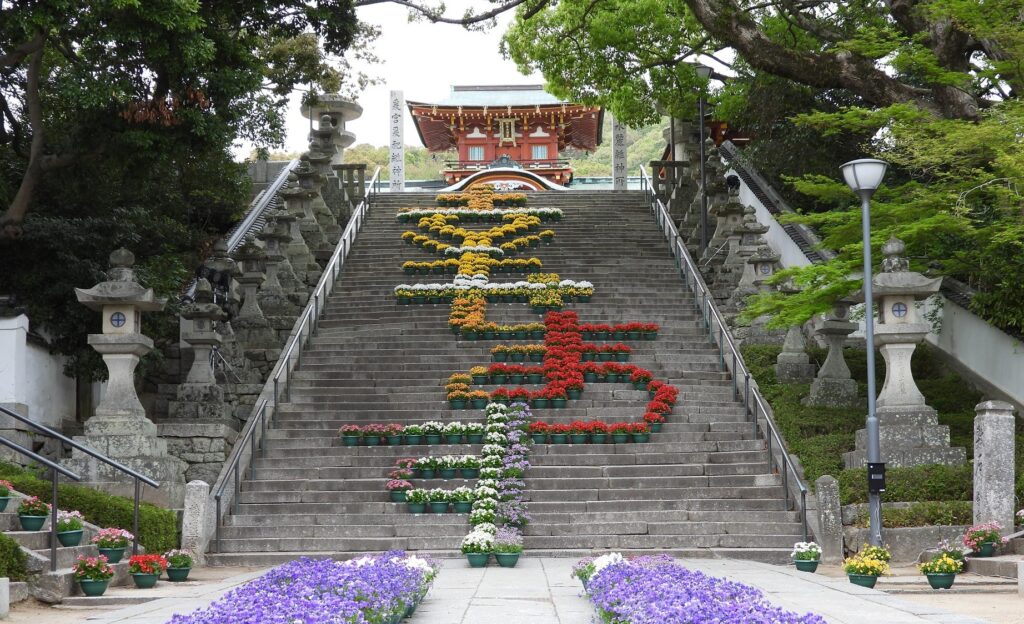 [併せて行きたい]“幸せ増す”イベント、防府天満宮の大石段花回廊(防府市)
